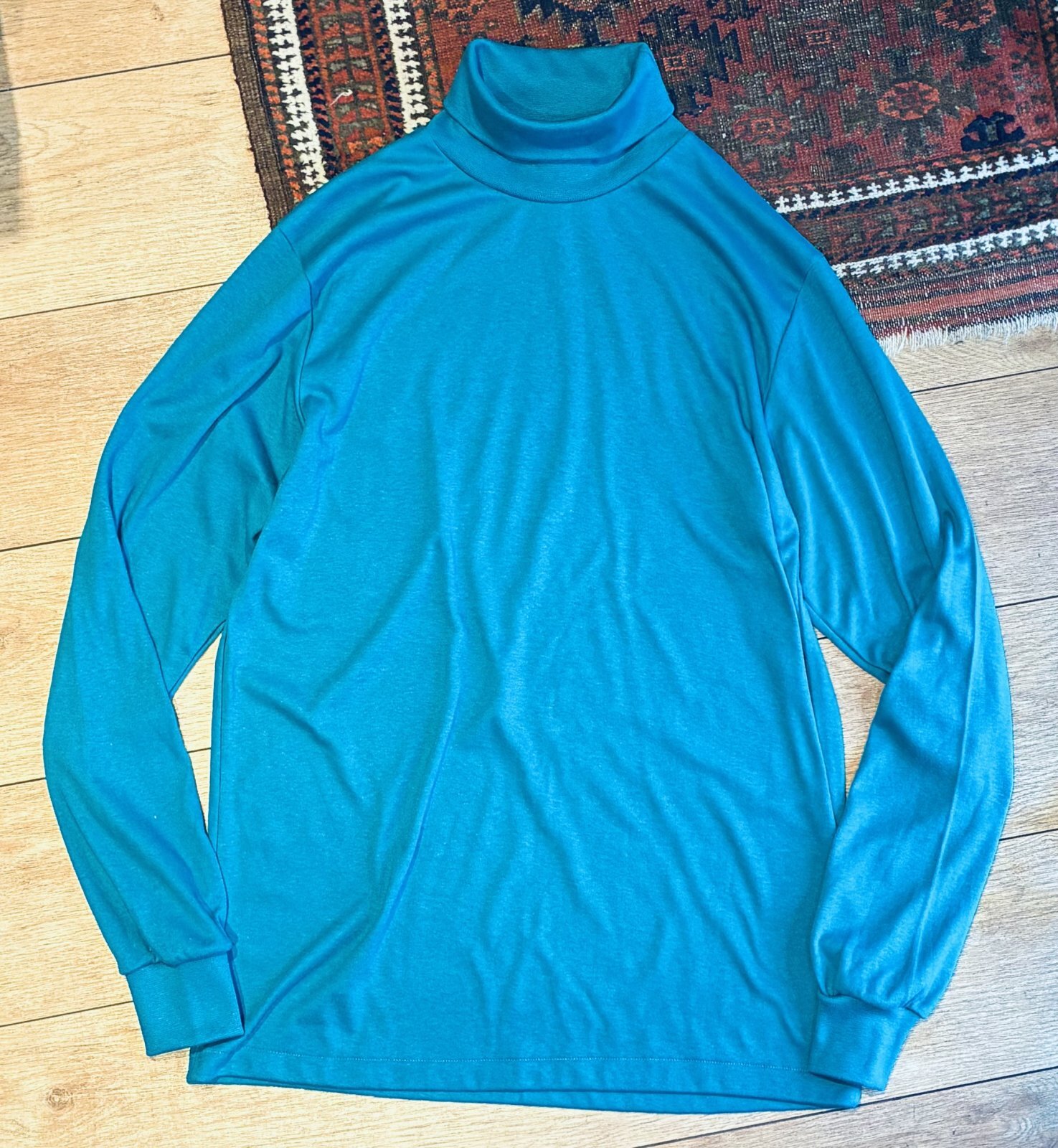 デッドストック 90's USA製【L.L.Bean】LLビーン ビンテージ【ターコイズ】無地【タートルネックロンT】【サイズL-TALL】
