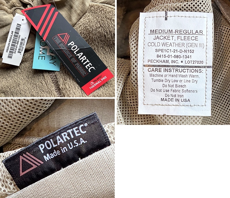 デッドストック 米軍実物【ECWCS】GEN3【Polartec】ポーラテック タンカラー フリースジャケット 【M-R】