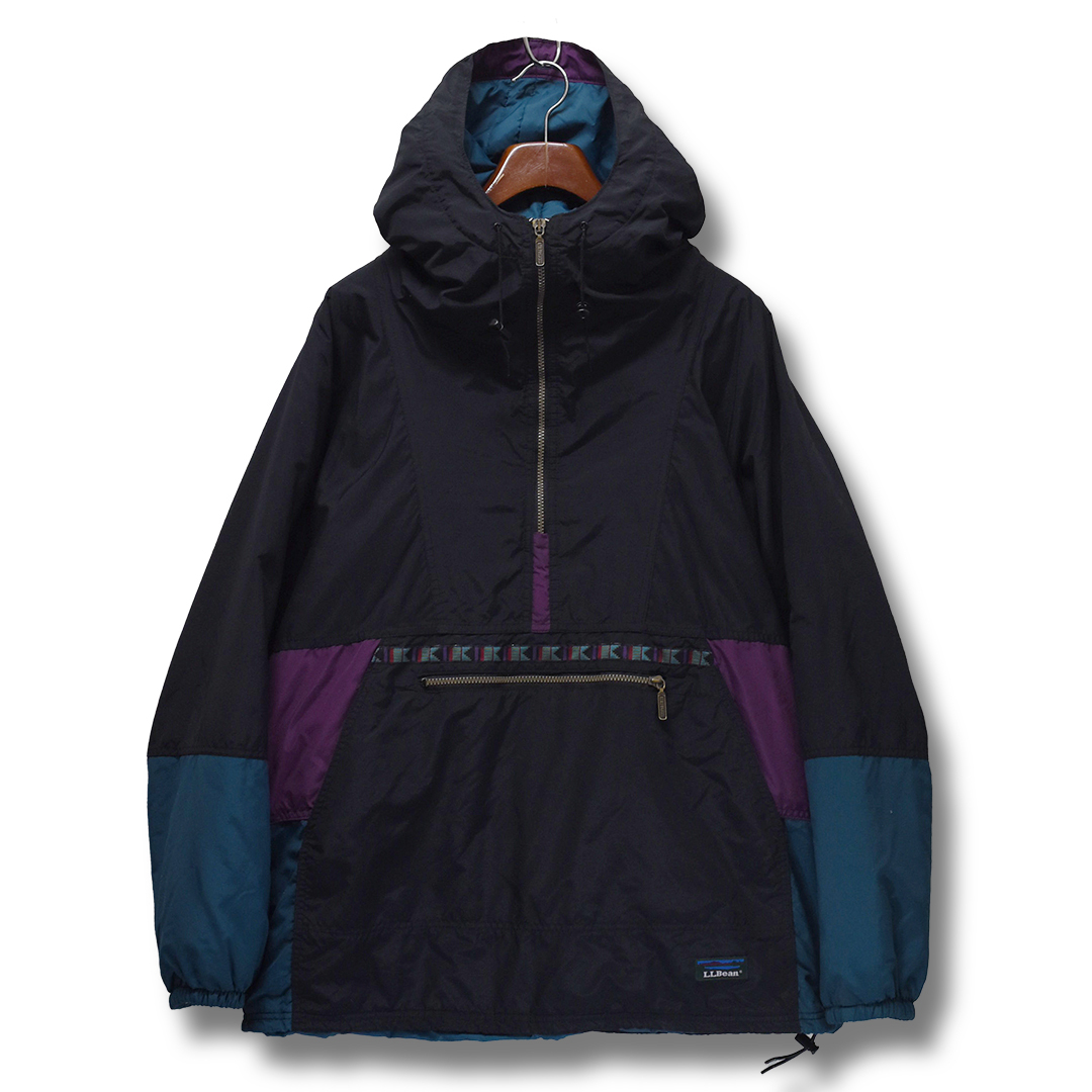 〜90's【USA製】 L.L.Bean エルエルビーン 黒x紫x青 シンサレート 中綿入り アノラックパーカー 【サイズXL】