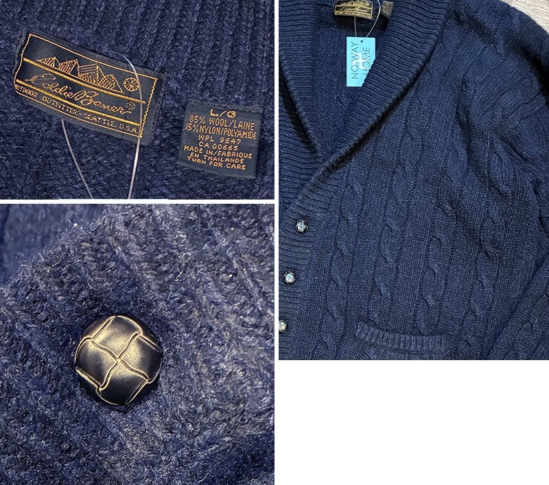 【〜90's】【ビンテージ】【エディーバウアー】紺【ショールカラーセーター】【サイズL】
