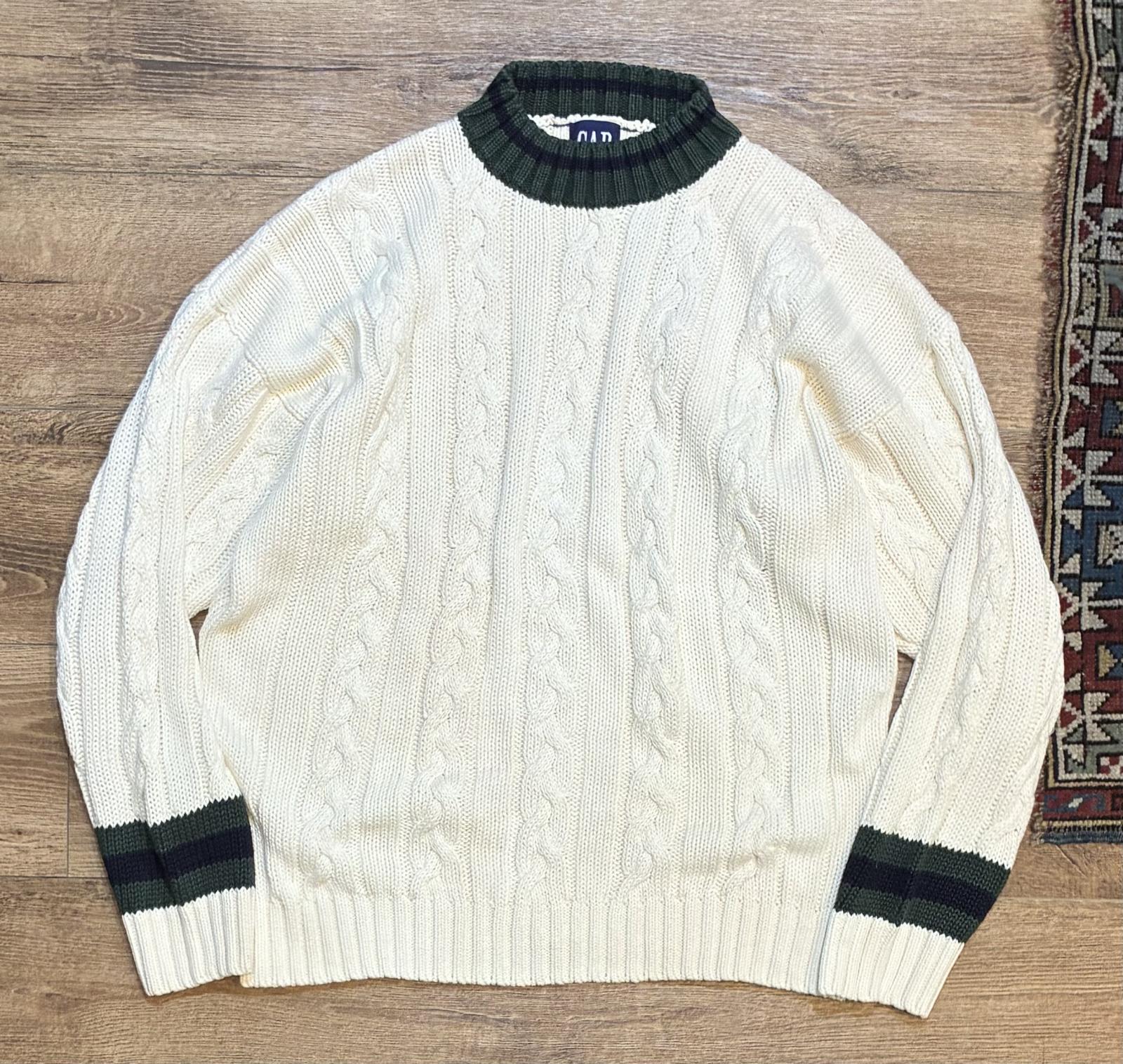 【ビンテージ】【オールドギャップ】【GAP】【生成り×緑】【モックネックコットンセーター】【サイズL】