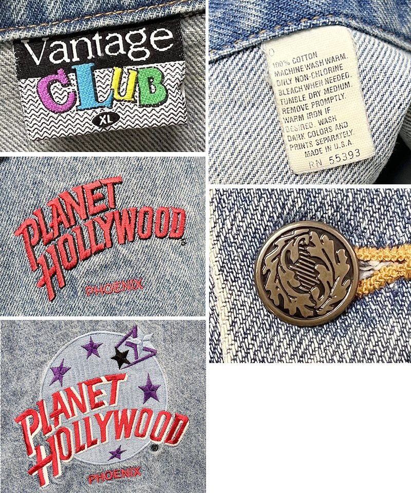 【90’s~】【USA製】【ビンテージ】【VANTAGE CLUB】【プラネットハリウッド】【デニムブルゾン】【デニムジャケット】サイズXL