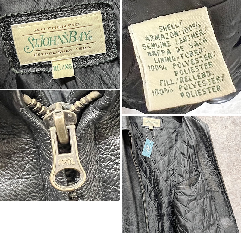 【ビンテージ】【STJOHNS'BAY】【セントジョーンズベイ】【ブラック】ジップアップ【レザージャケット】【サイズXL】