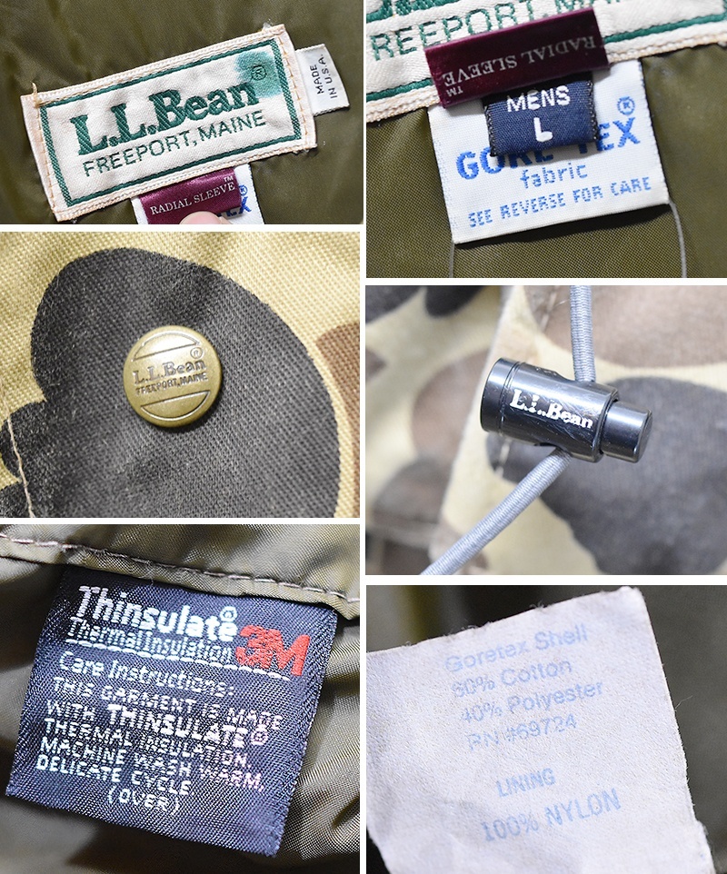 80's【ビンテージ】【LLビーン】【L.L.Bean】【ダックハンターカモ】カモ柄 ゴアテックス シンサレート入り【マウンテンパーカー】【サイズL】