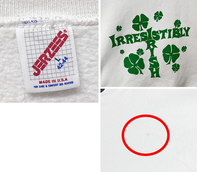 90's【USA製】JERZEES ジャージーズ【ビンテージ】【IRISH IRRESISTIBLY】プリント【白】スウェット【サイズL】