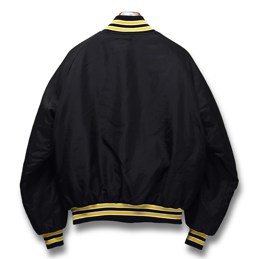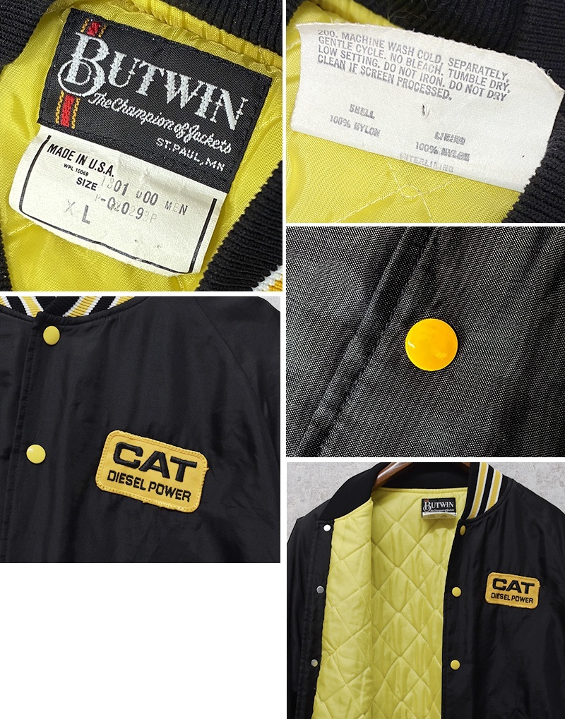 80's【USA製】【ビンテージ】【BUTWIN】バトウィン【CAT DIESEL POWER】【黒x黄色】【中綿入りサテンスタジャン】【サイズXL】
