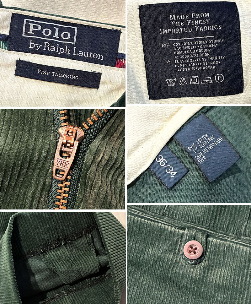 ビンテージ【ラルフローレン】POLO RALPH LAUREN【FINE TAILORING】【緑】【コーデュロイパンツ】【36×34】