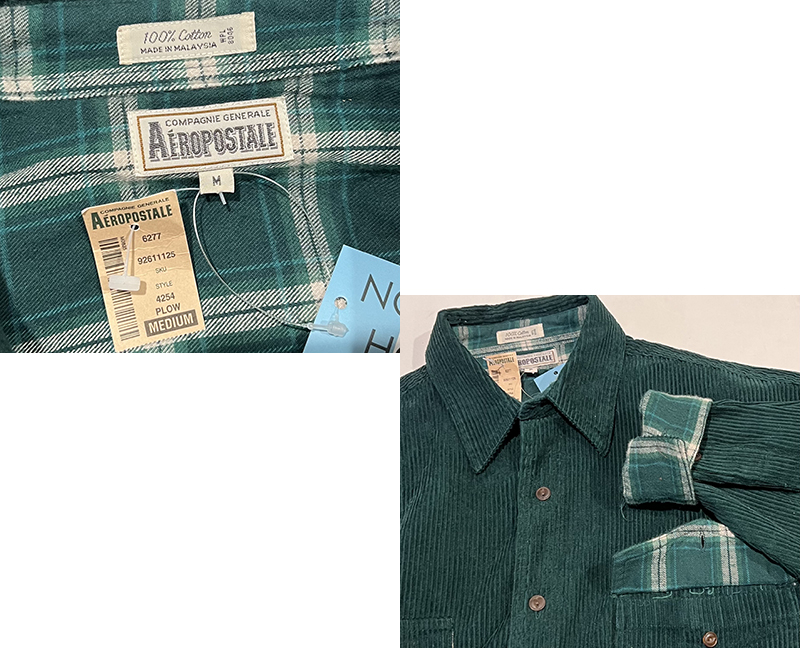 デッドストック【新品未使用】【Aeropostale】【緑】【コーデュロイ】【シャツジャケット】【サイズM】
