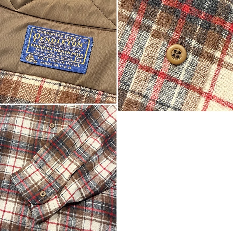 程度良好!! 70's【USA製】【ビンテージ】【ペンドルトン】Pendleton【ブラウンx赤×白】【チェック】【ウールシャツ】【サイズXL】