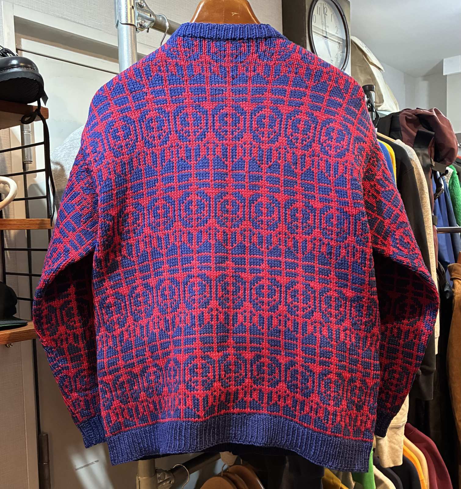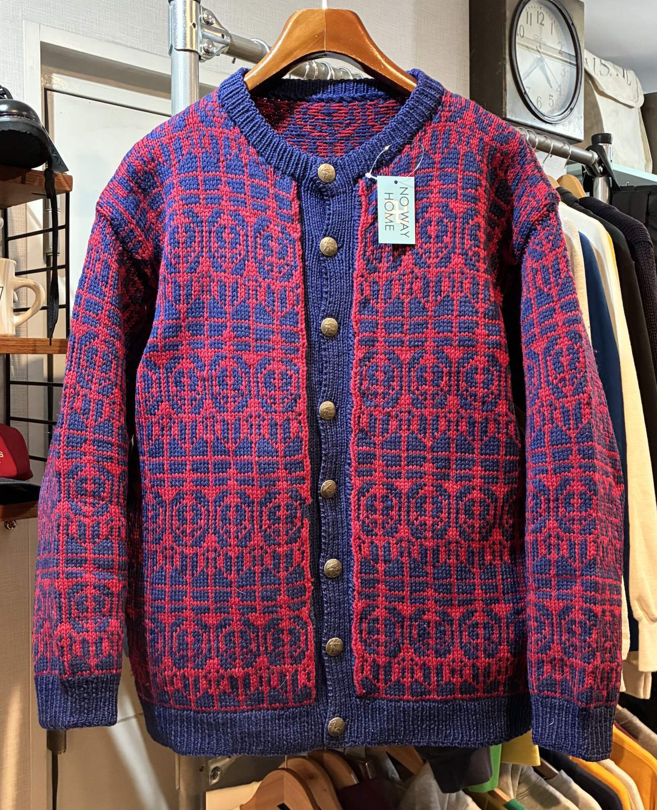 赤x紺 【ノルディックカーディガン】ウールカーディガン