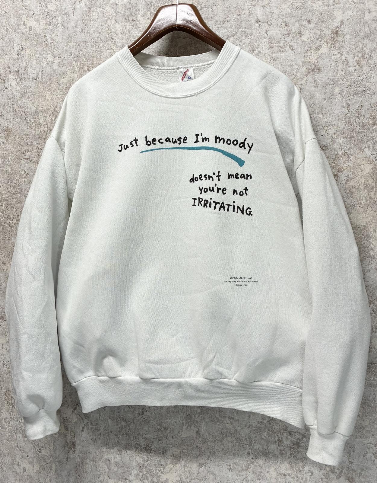 90's【USA製】JERZEES ジャージーズ【ビンテージ】【Just because~】プリント【白】スウェット【サイズXL】