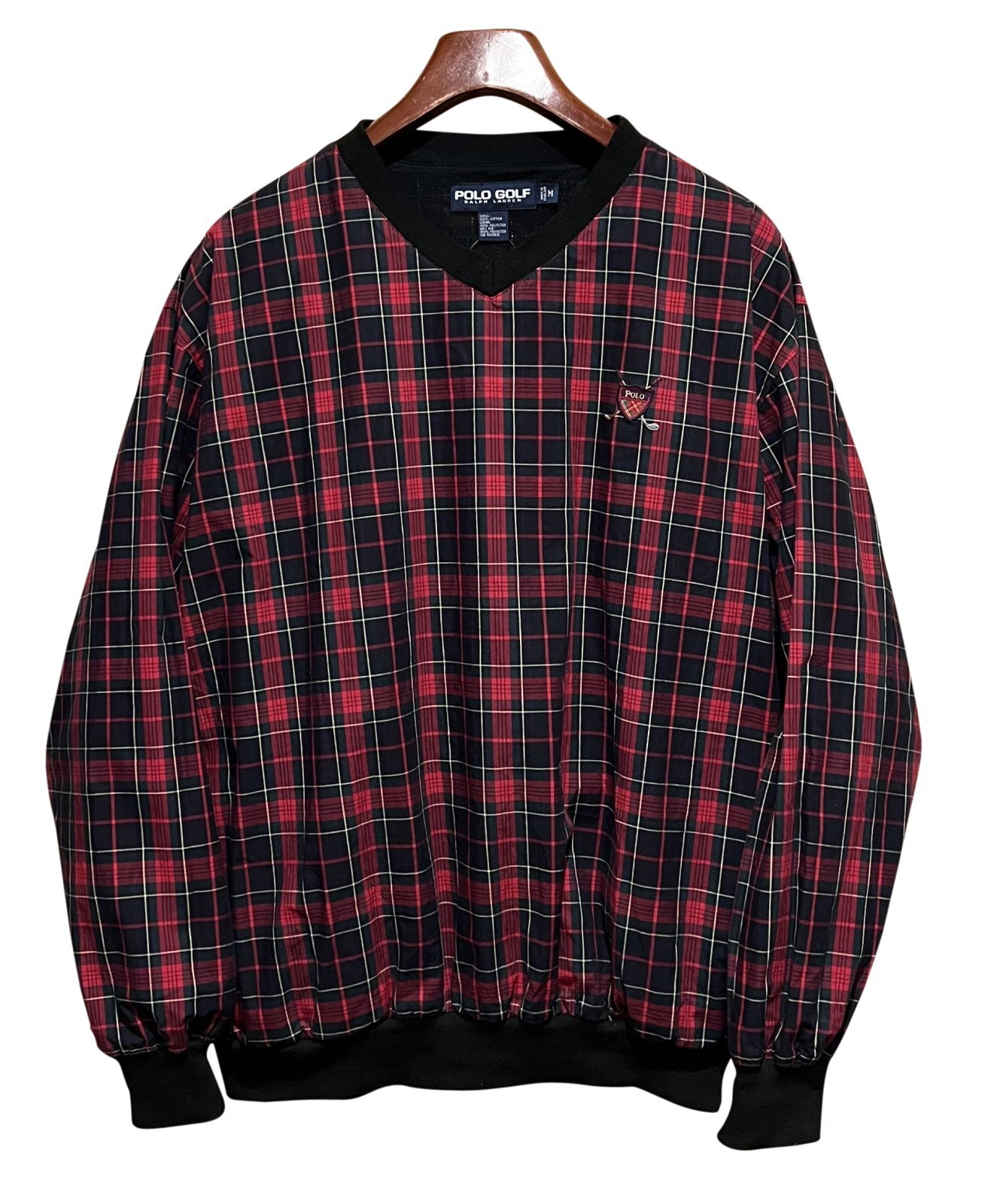 ビンテージ【POLO GOLF】【ポロゴルフ】【ラルフローレン】【RALPH LAUREN】【赤】タータンチェック【Vネック】【プルオーバー】【サイズM】