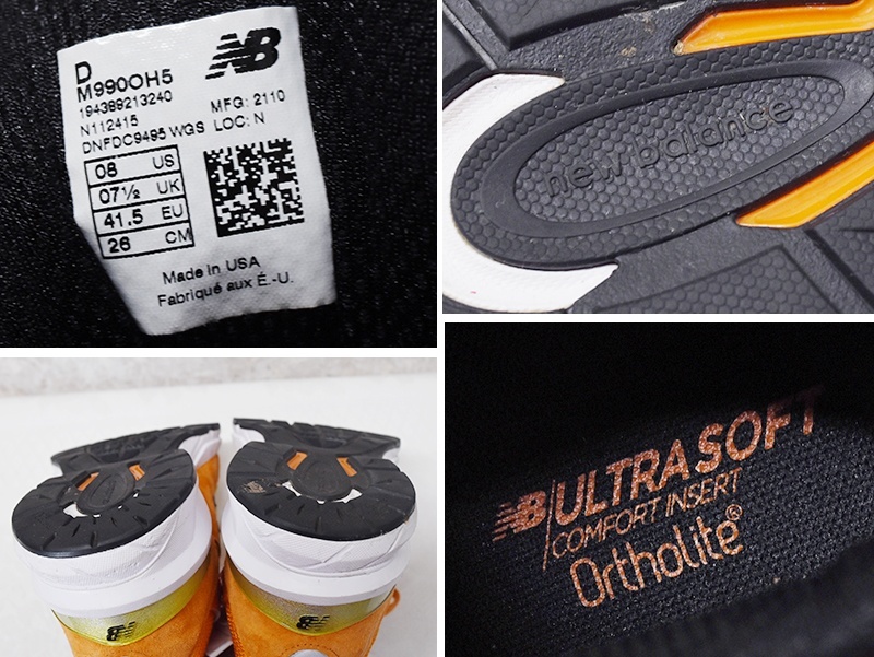 程度良好!! USA製【ニューバランス】new balance【990】【V5】OH5 オレンジ スニーカー【サイズ28cm】