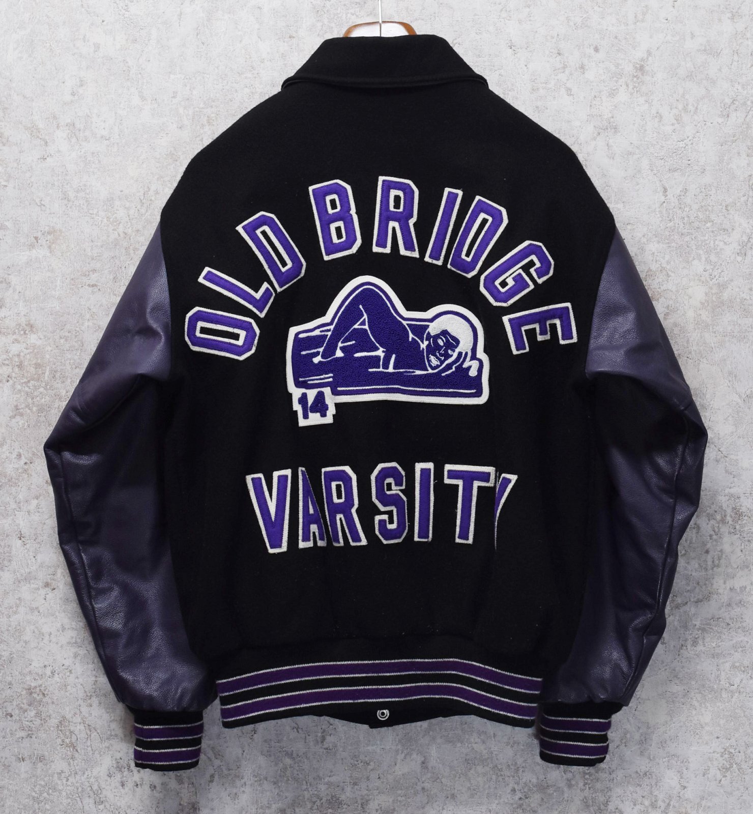 UNITED SPORT APPAREL【ビンテージ】【黒メルトンx紫レザー】【OLD BRIDGE】【スタジャン】【サイズL】
