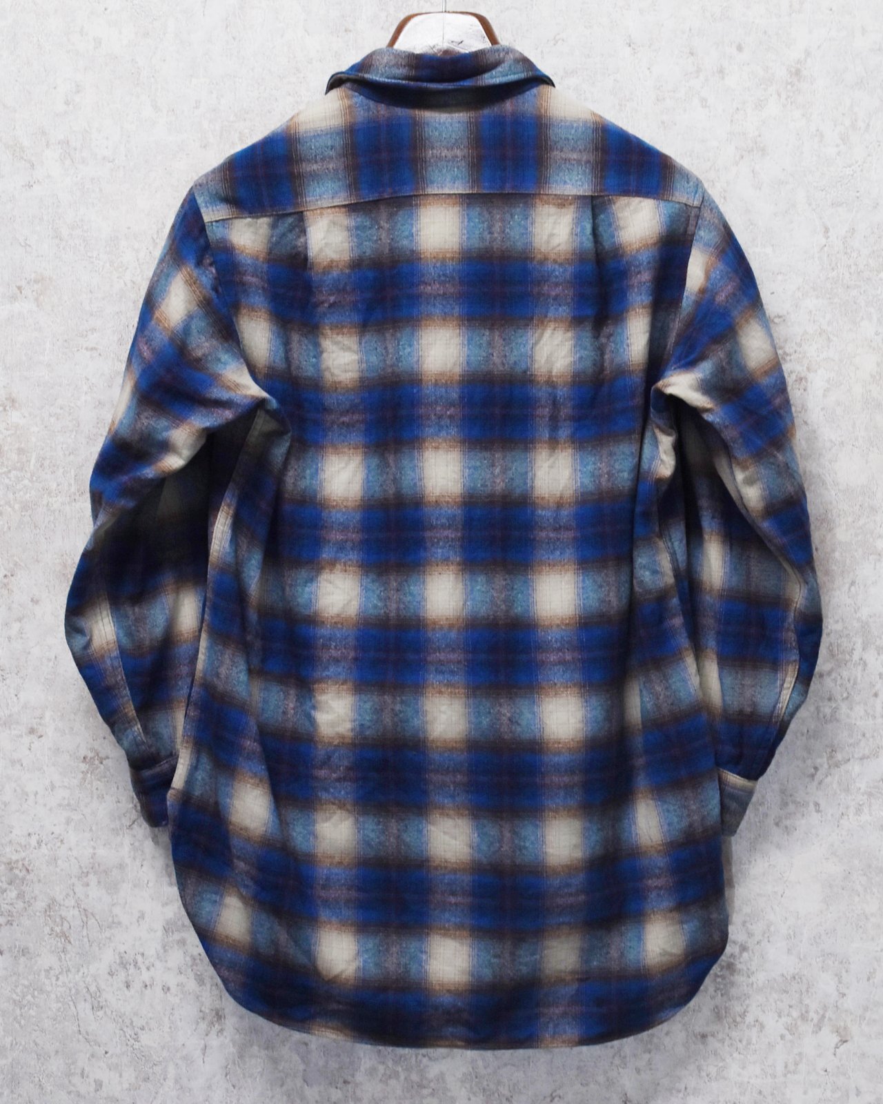 程度良好!! 〜80's【USA製】【ビンテージ】【ペンドルトン】Pendleton【青xベージュ】【シャドーチェック】【ウールシャツ】【サイズM】