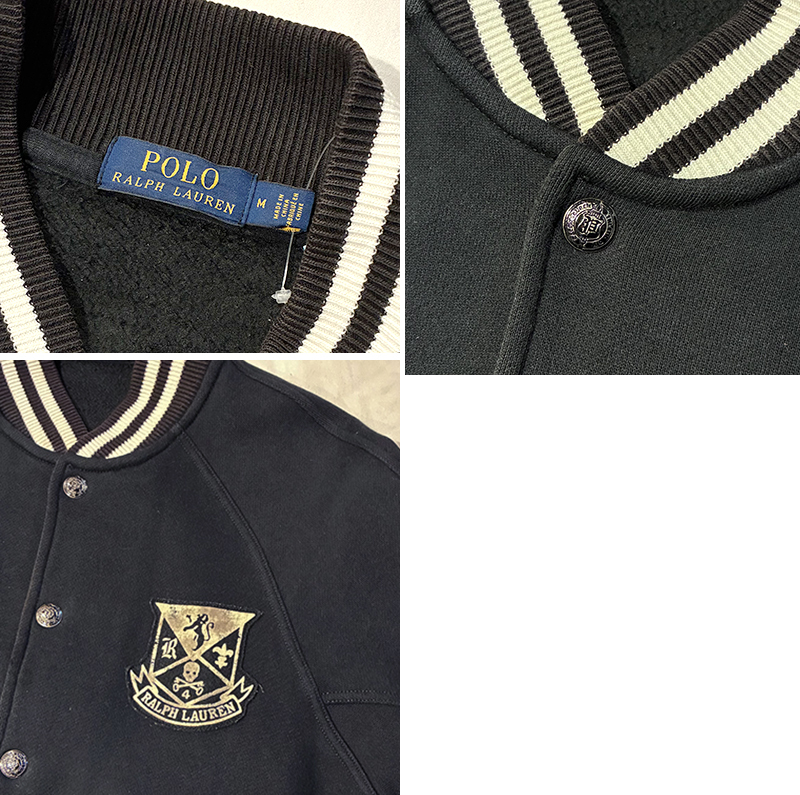 ビンテージ【ラルフローレン】【POLO RALPH LAUREN】【黒×白】【ブルゾン】【スウェットスタジャン】【サイズM】
