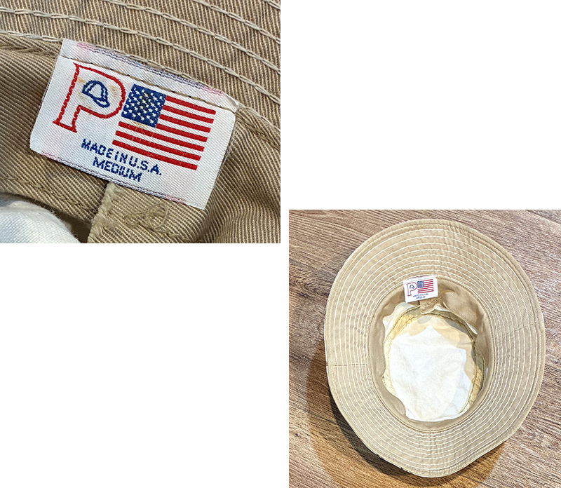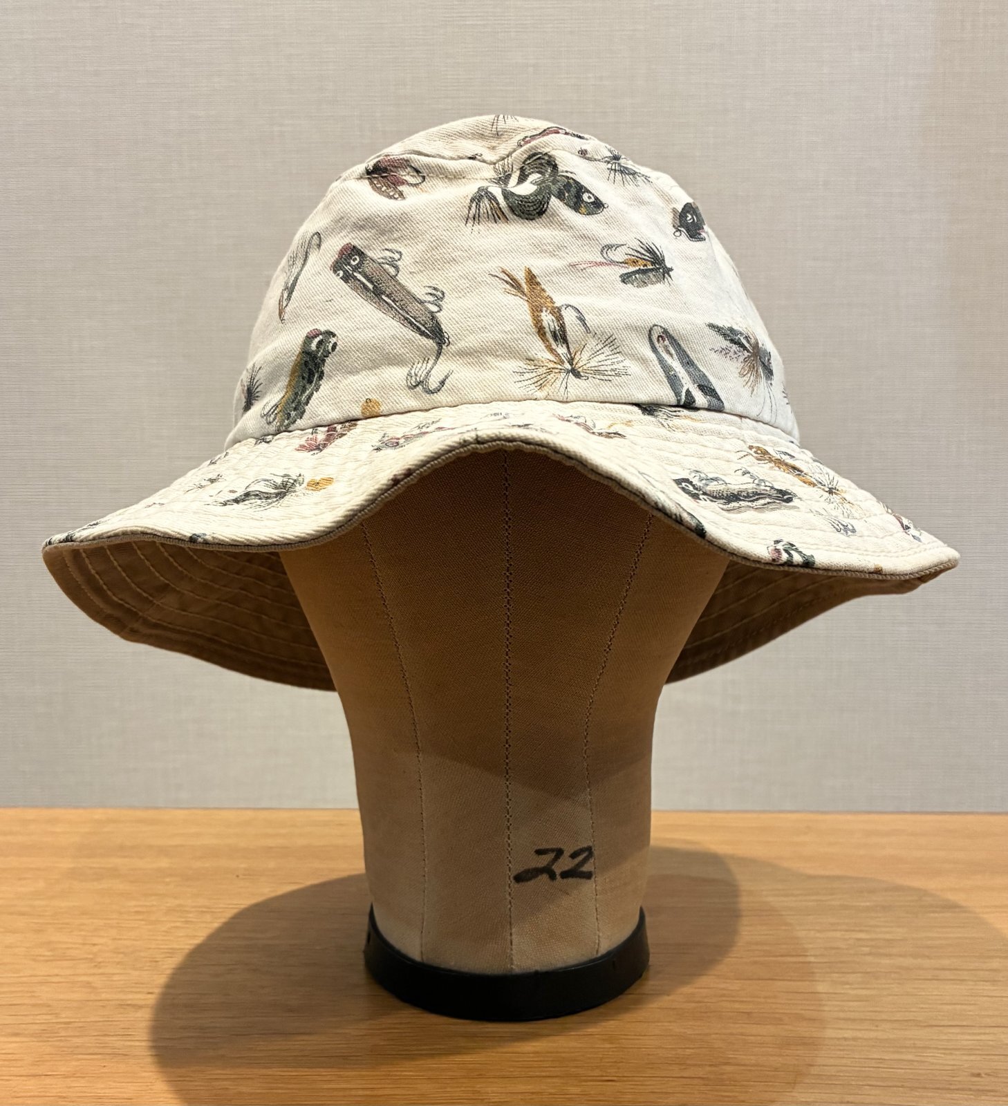 程度良好!! USA製【ビンテージ】生成りxルアー 総柄【コットン】毛ばり 釣り【バケットハット】【サイズM】