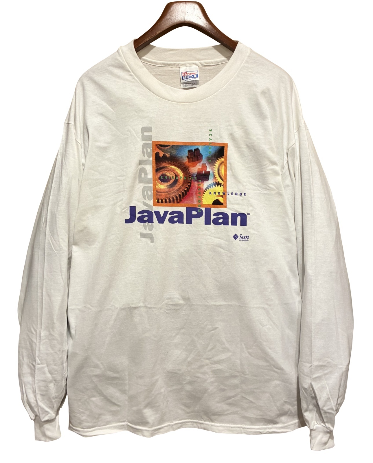 デッドストック【90's】【ビンテージ】【Hanes】ヘインズ【JAVAPLAN】白【ロンT】【サイズXL】