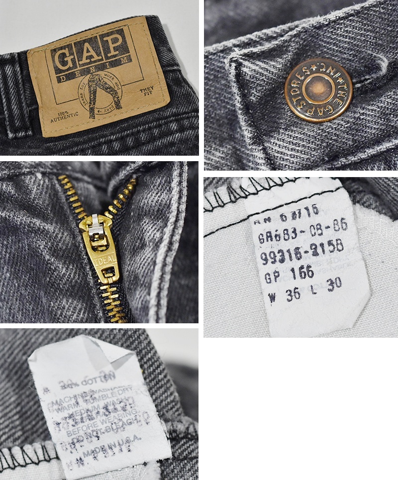 ~90's USA製【ビンテージ】【ギャップ】【GAP】【黒】先染め【ブラックデニム】デニムパンツ【36×30】