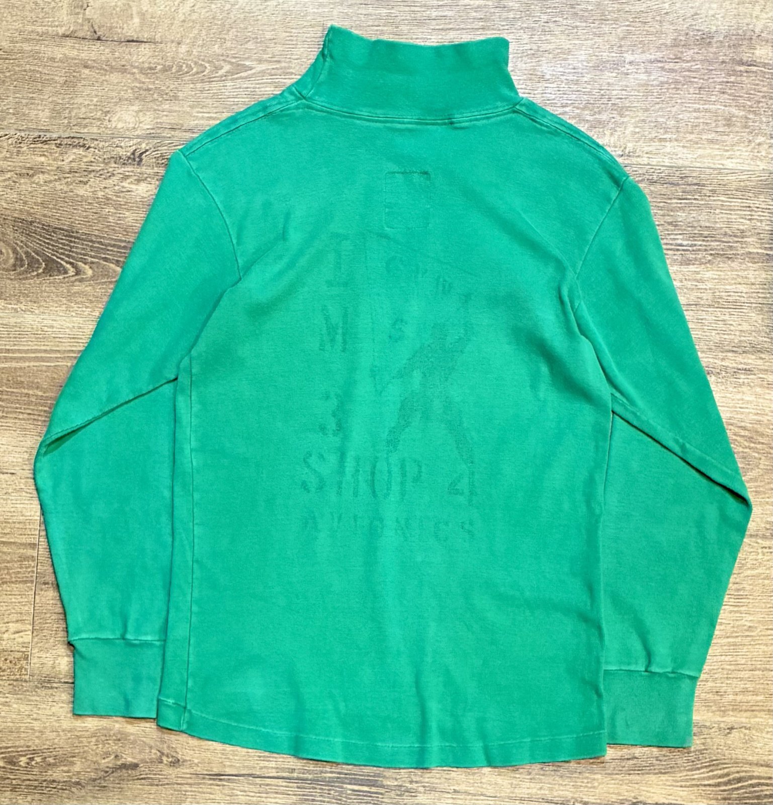 70's【米軍実物】【ビンテージ】【U.S.NAVY】【緑】【ステンシル入り】【デッキクルーシャツ】【サイズL】