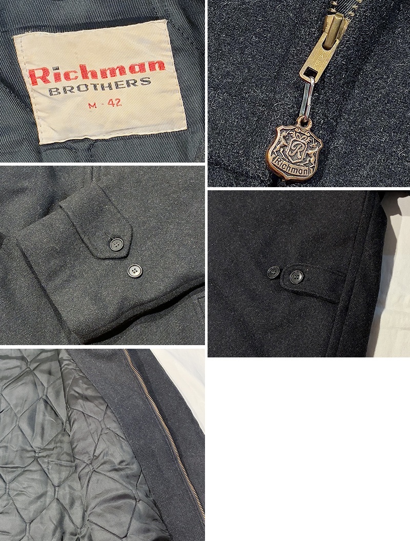 〜70's【ビンテージ】【Richman Brothers】【リッチマンブラザーズ】チャコール【ウール】【ジップアップジャケット】【US42】