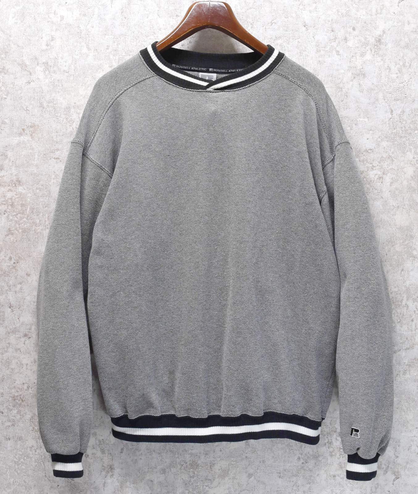 90's~【USA製】【RUSSELL】ラッセル 【ビンテージ】【白×黒】ザクザク【無地】スウェット【サイズXL】
