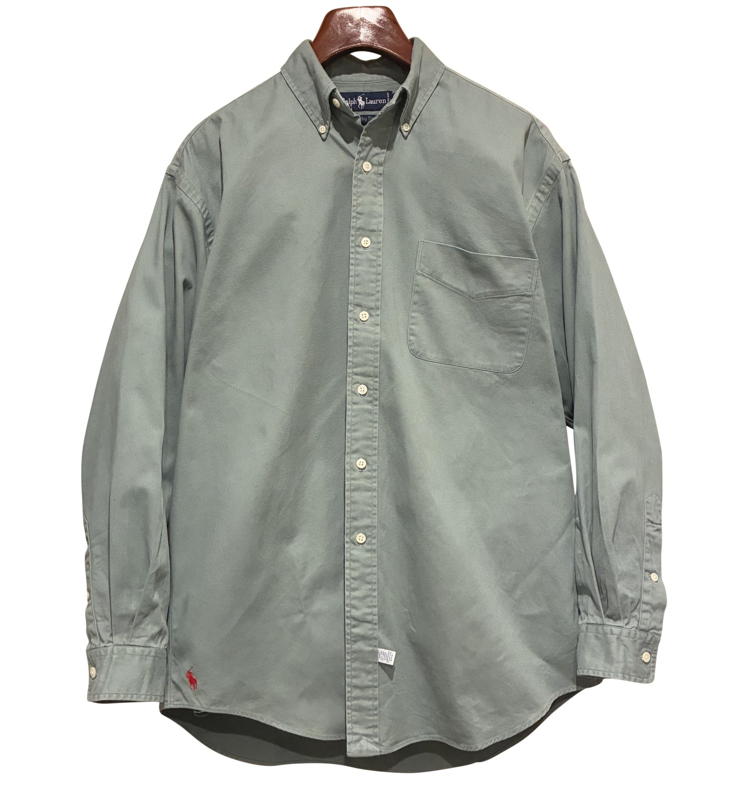 90's ビンテージ【ラルフローレン】POLO ralph lauren Big Shirt ビッグシャツ 青磁色 ボタンダウン【コットンシャツ】【サイズM】