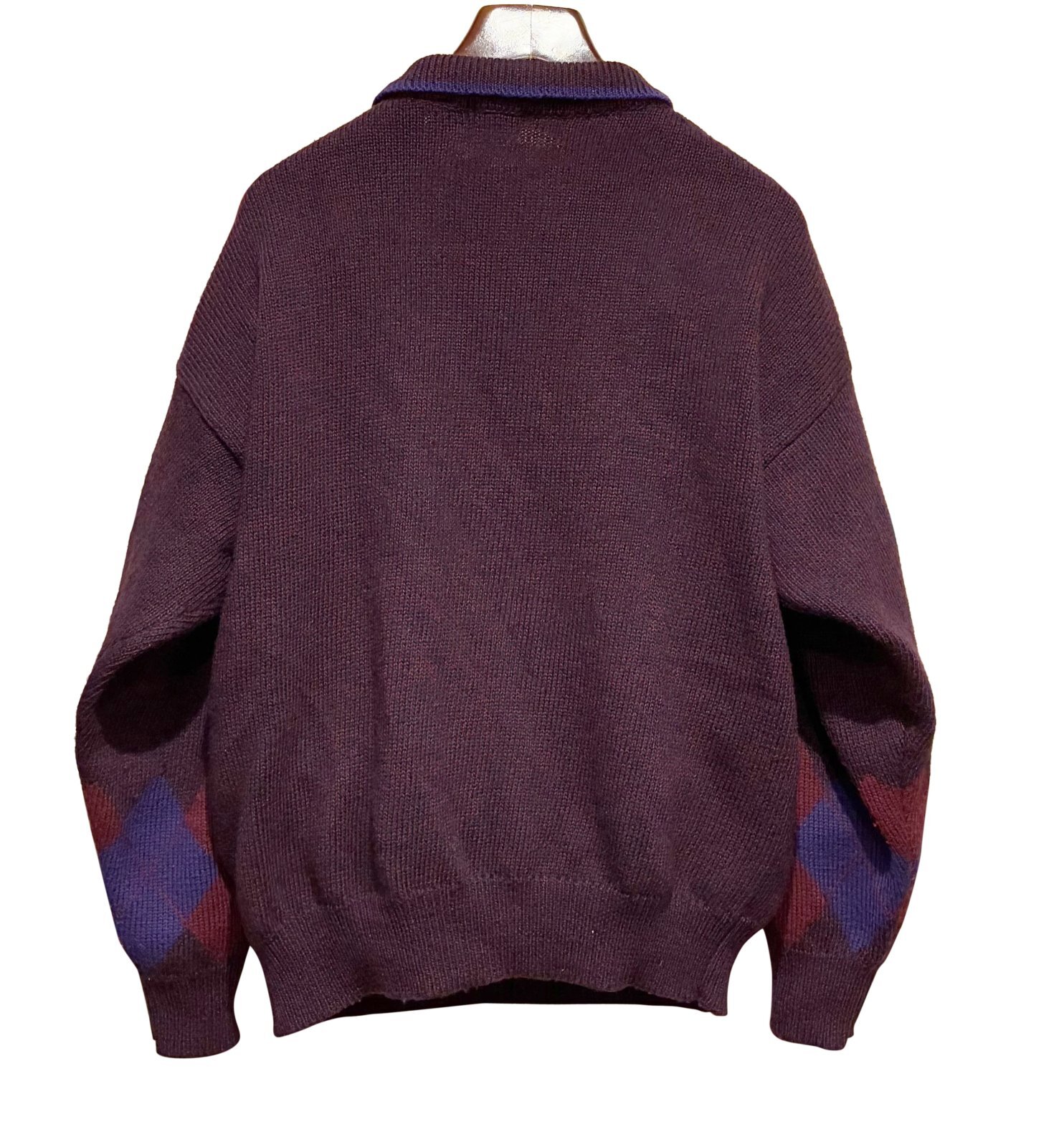 90's~【ビンテージ】【オールドギャップ】【GAP】【ワインマーブル×アーガイル】【ヘンリーネックセーター】ウールセーター【サイズXL】