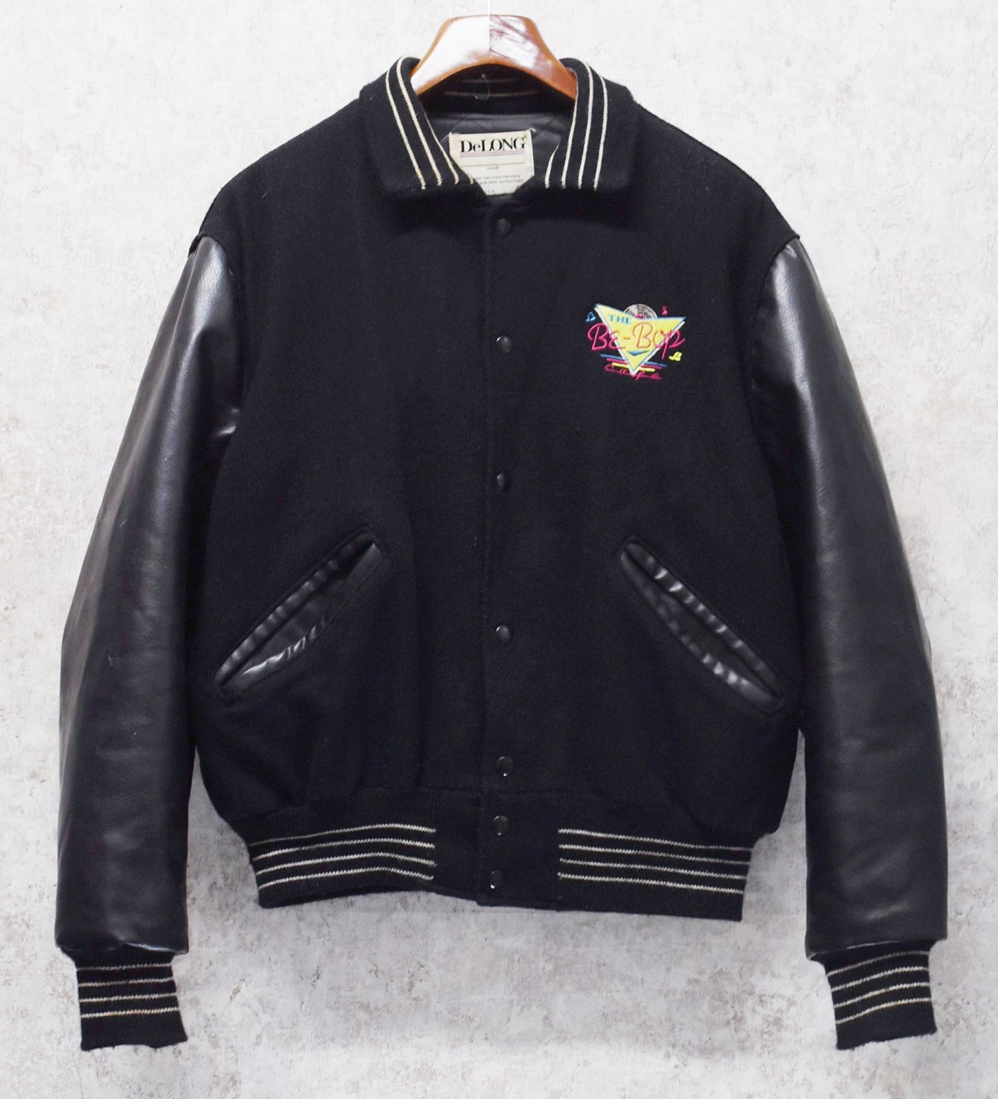 〜80’s USA製【DeLONG】デロング【ビンテージ】The Be-Bop Cafe【メルトンxレザー】【黒】【襟付きスタジャン】【US42】