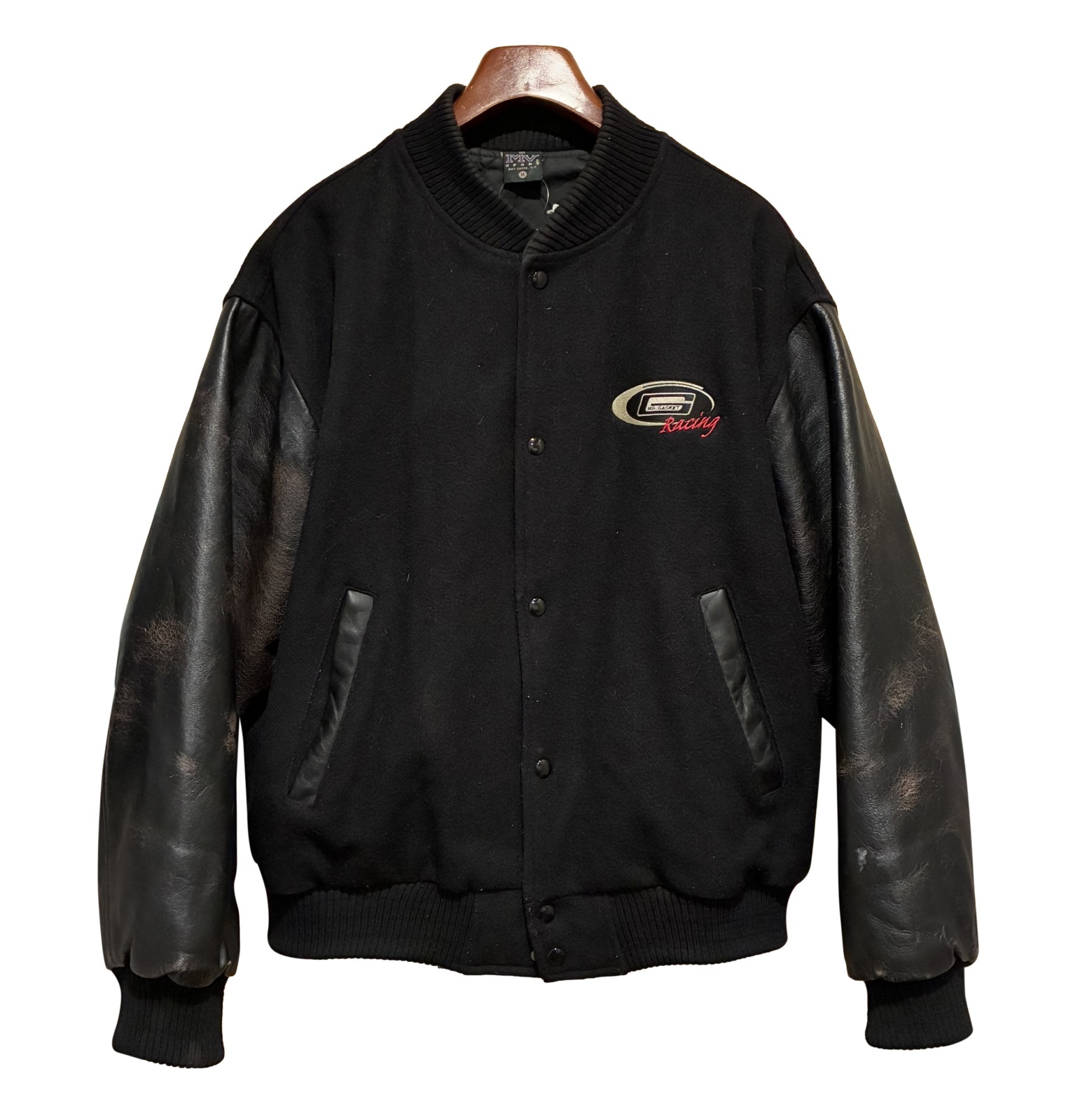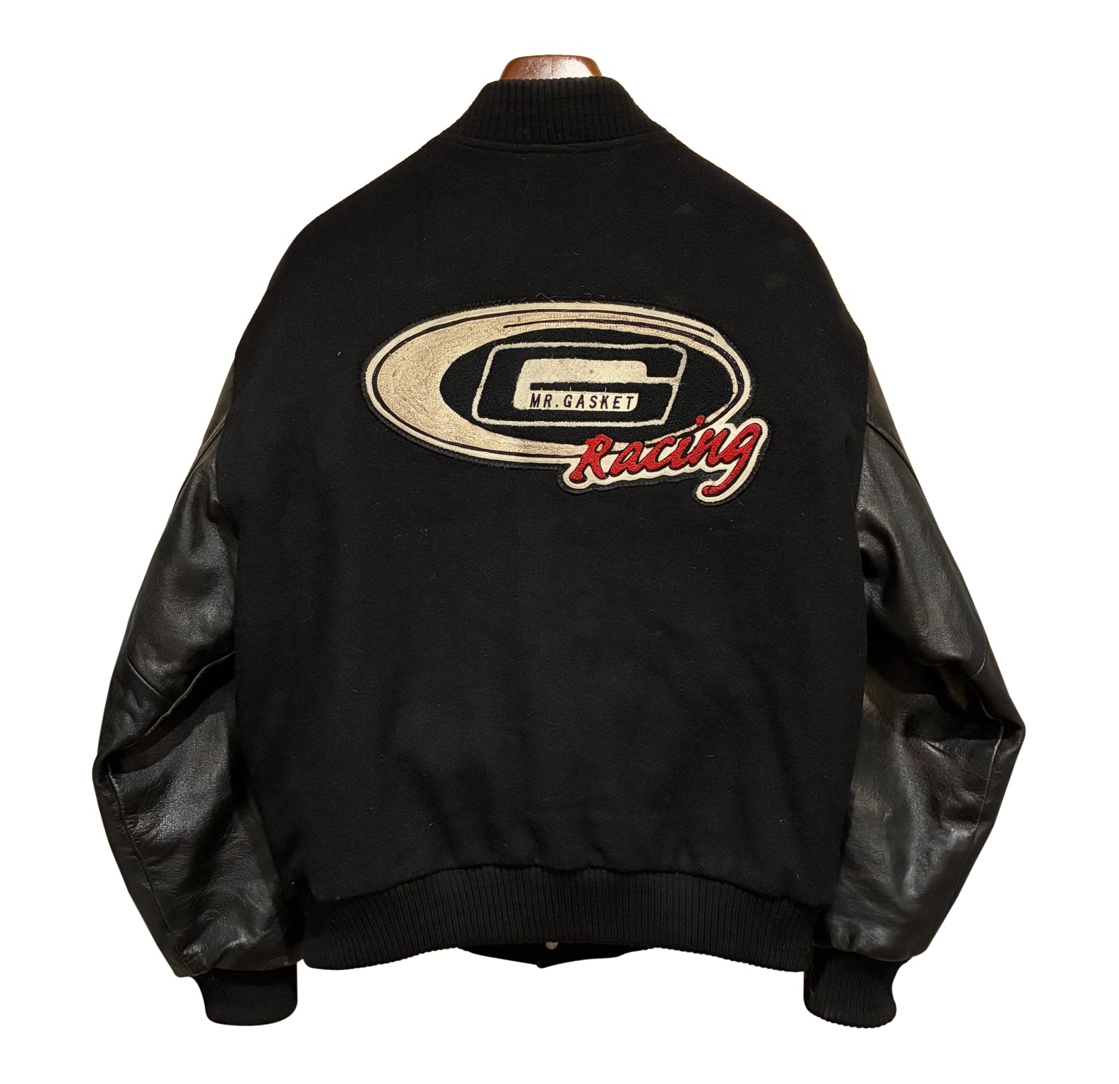 90’s USA製【MV SPORT】【ビンテージ】MR.GASKET RACING【メルトンxレザー】【黒】茶芯【スタジャン】【サイズM】