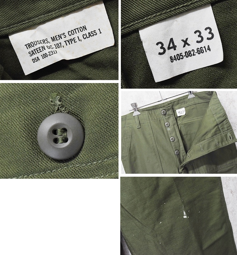 デッドストック【60's】【米軍実物】【ビンテージ】OG107【ベイカーパンツ】ダブルステッチ【ユーティリティパンツ】【34x33】