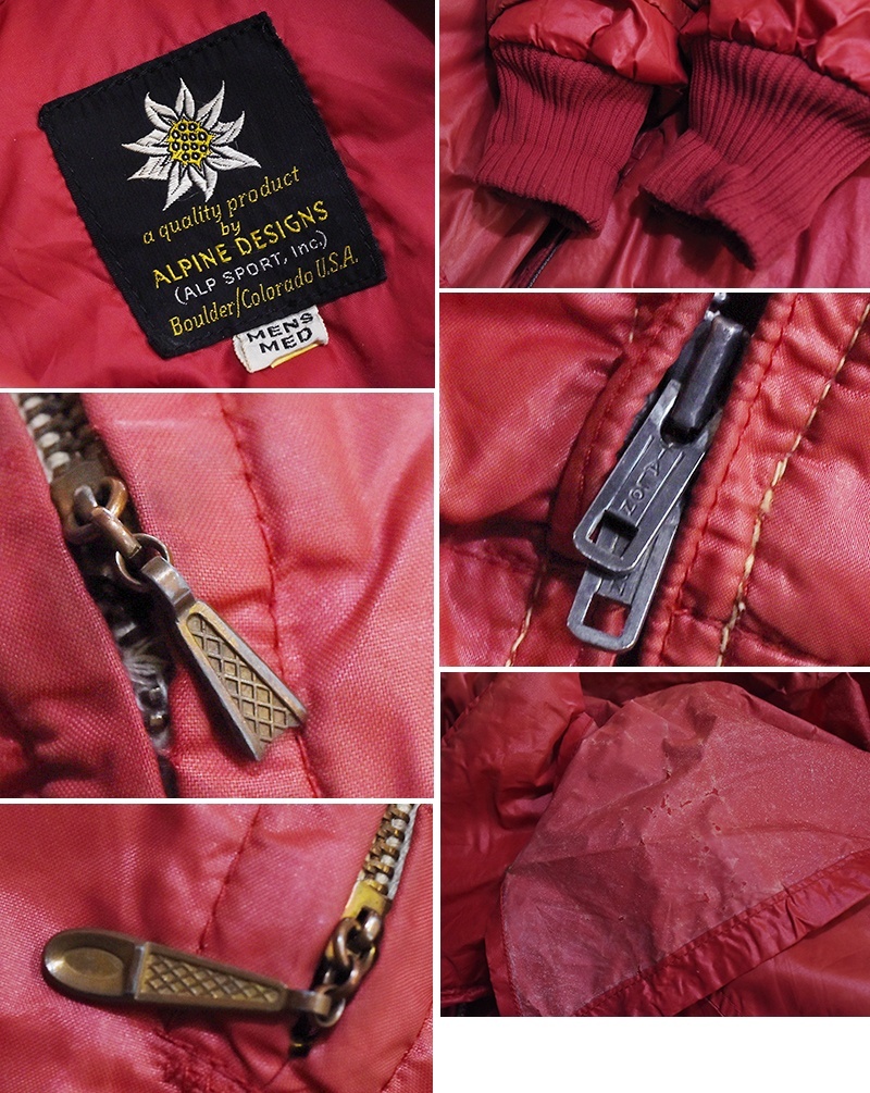 〜80’s【ビンテージ】【ALPINE DESIGN】【アルパインデザイン】【ベルト付き】赤ピンク【ダウンコート】【サイズM】