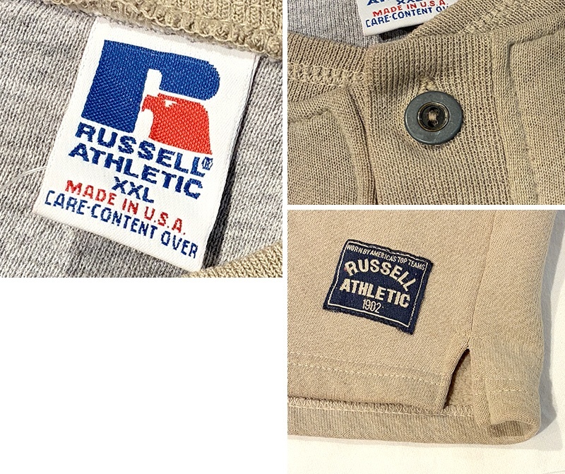 90's【USA製】【RUSSELL】ラッセル 【ビンテージ】ベージュ 【無地】【ヘンリーネックネックスウェット】【サイズXXL】