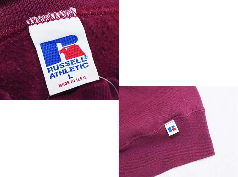 90's【USA製】【RUSSELL】ラッセル 【ビンテージ】【紫】 前V【無地】【クルーネックスウェット】【サイズL】