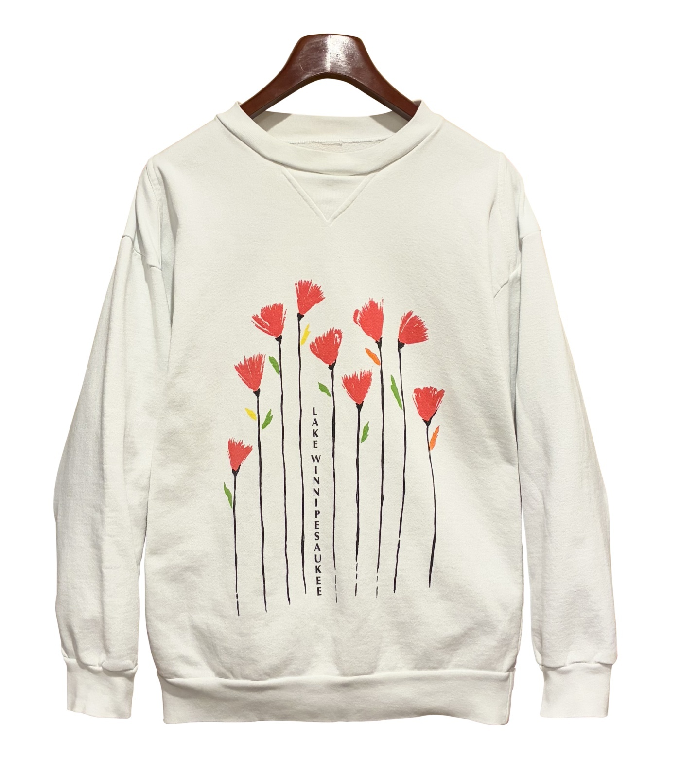 【ビンテージ】ウィニペソーキー湖【LAKE WINNIPESAUKEE】前V 花【白】スウェット【サイズL程度】