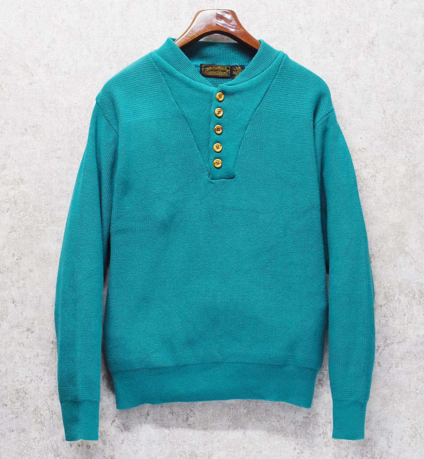【〜90's】【ビンテージ】Eddie Bauer【エディーバウアー】エメラルド【コットンヘンリーネックセーター】【サイズL】