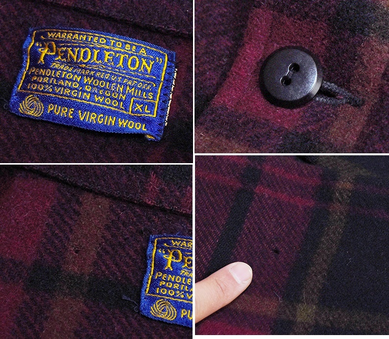 60's【ビンテージ】【Pendleton】【ペンドルトン】【エンジ×黒x緑チェック】【ウールジャケット】サイズXL