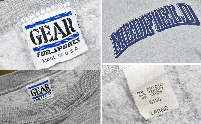 90's【USA製】ビンテージ【GEAR for sports】ギアフォースポーツ【グレー】【MEDFIELD】メドフィールド【プリント】カレッジ【スウェット】【サイズL】