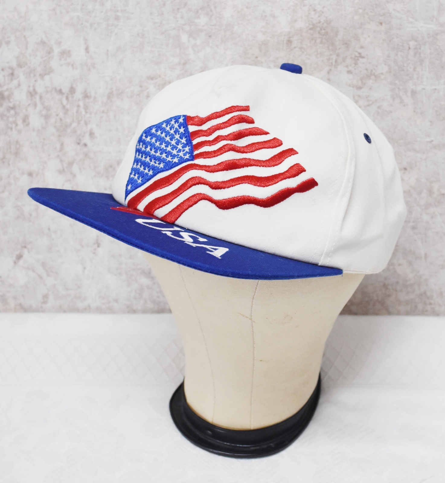 【USA製】K-Products【ビンテージ】【アメリカ国旗】刺繍【白×青】BBキャップ【ベースボールキャップ】サイズフリー