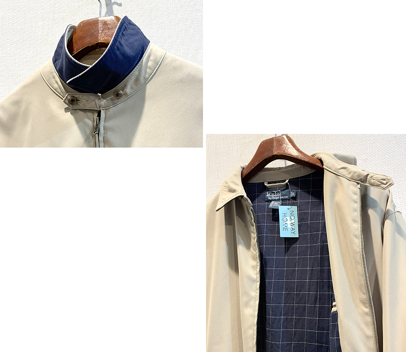 【ビンテージ】【ラルフローレン】【POLO RALPH LAUREN】【ベージュx裏地紺格子柄】ジップアップ【ブルゾン】スウィングトップ【サイズL】