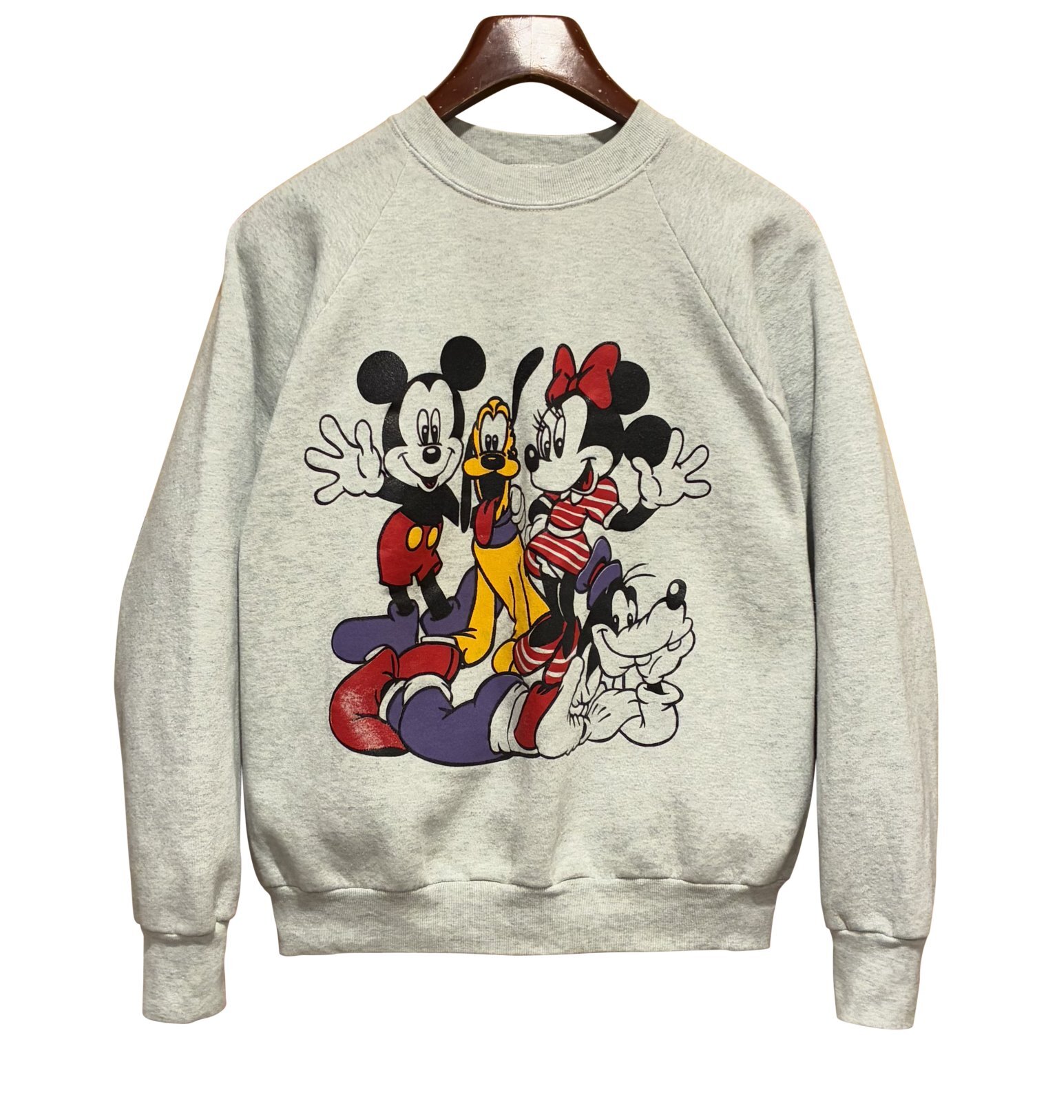 90's【USA製】【ビンテージ】フルーツオブザルーム ウォルトディズニー【ミッキーマウス】ミニー 【プルート】グーフィー グレー【スウェット】【サイズL】