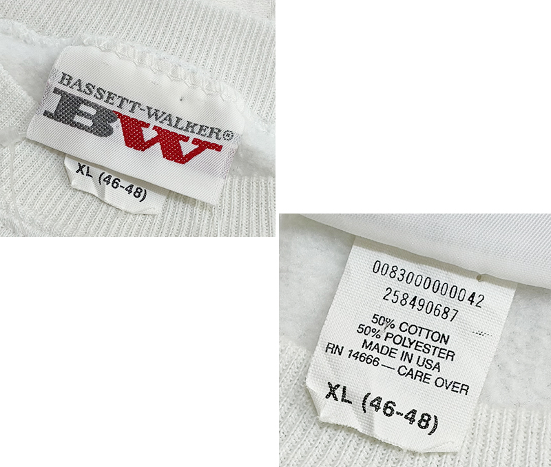 80’s【USA製】BW【BASSETT-WALKER】バセットウォーカー ビンテージ RSVP【風船】【白】スウェット サイズXL