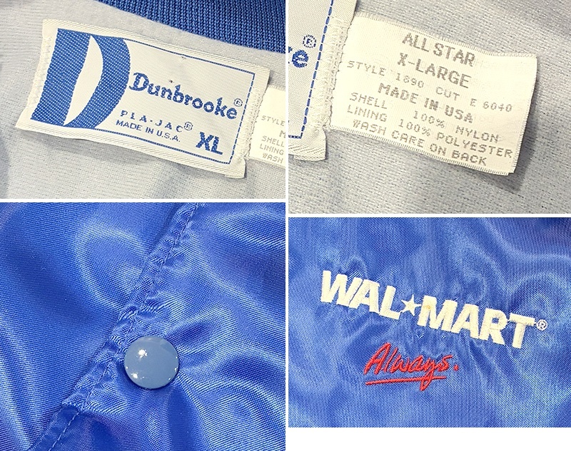 【USA製】【ビンテージ】【Dunbrooke 】ダンブルック【WALMART】青【ナイロンジャケット】【スタジャン】【サイズXL】