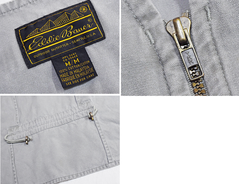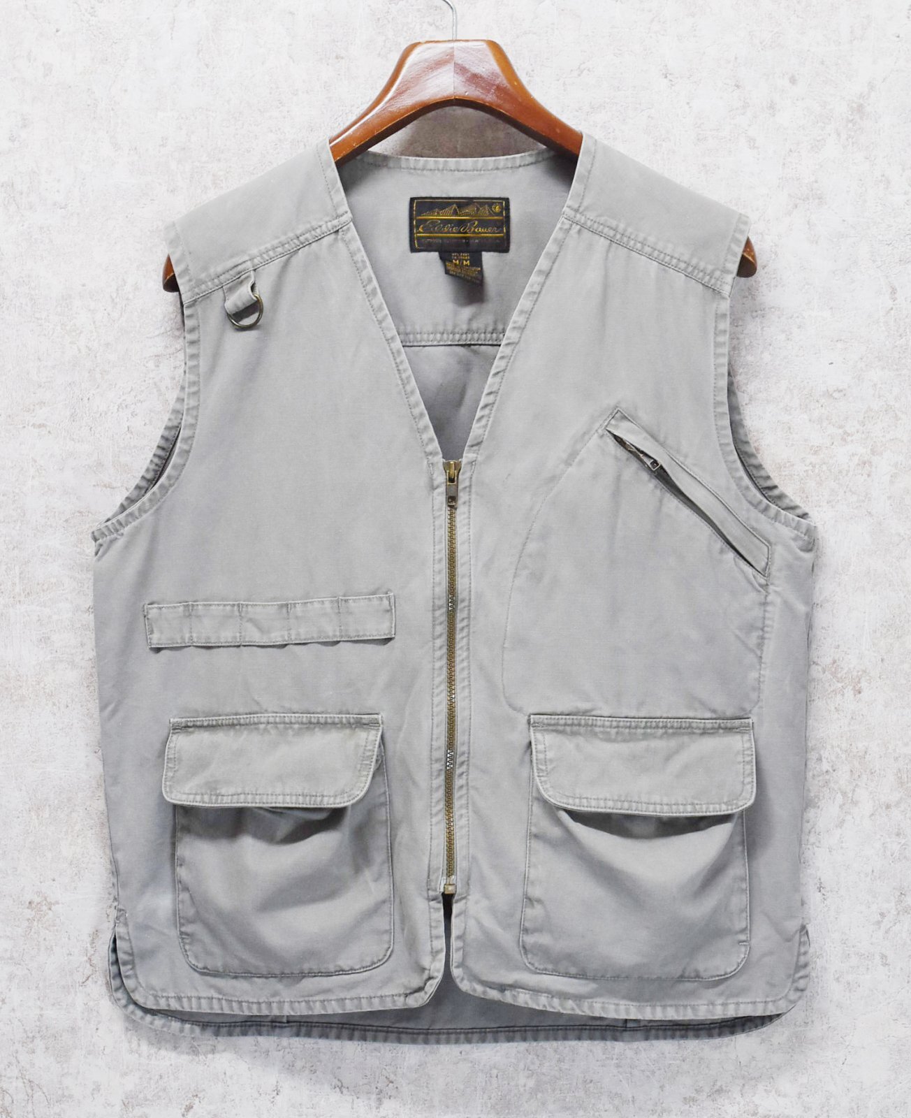 90's~【ビンテージ】【Eddie Baue】【エディーバウアー】黒タグ【グレー】【ハンティングベスト】【サイズM】