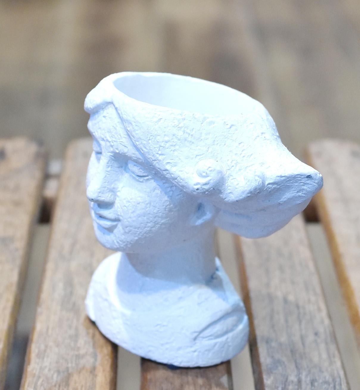 【ビンテージ】アンティーク【石膏像】白【少女】植木鉢【雑貨】置物