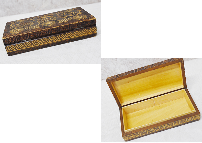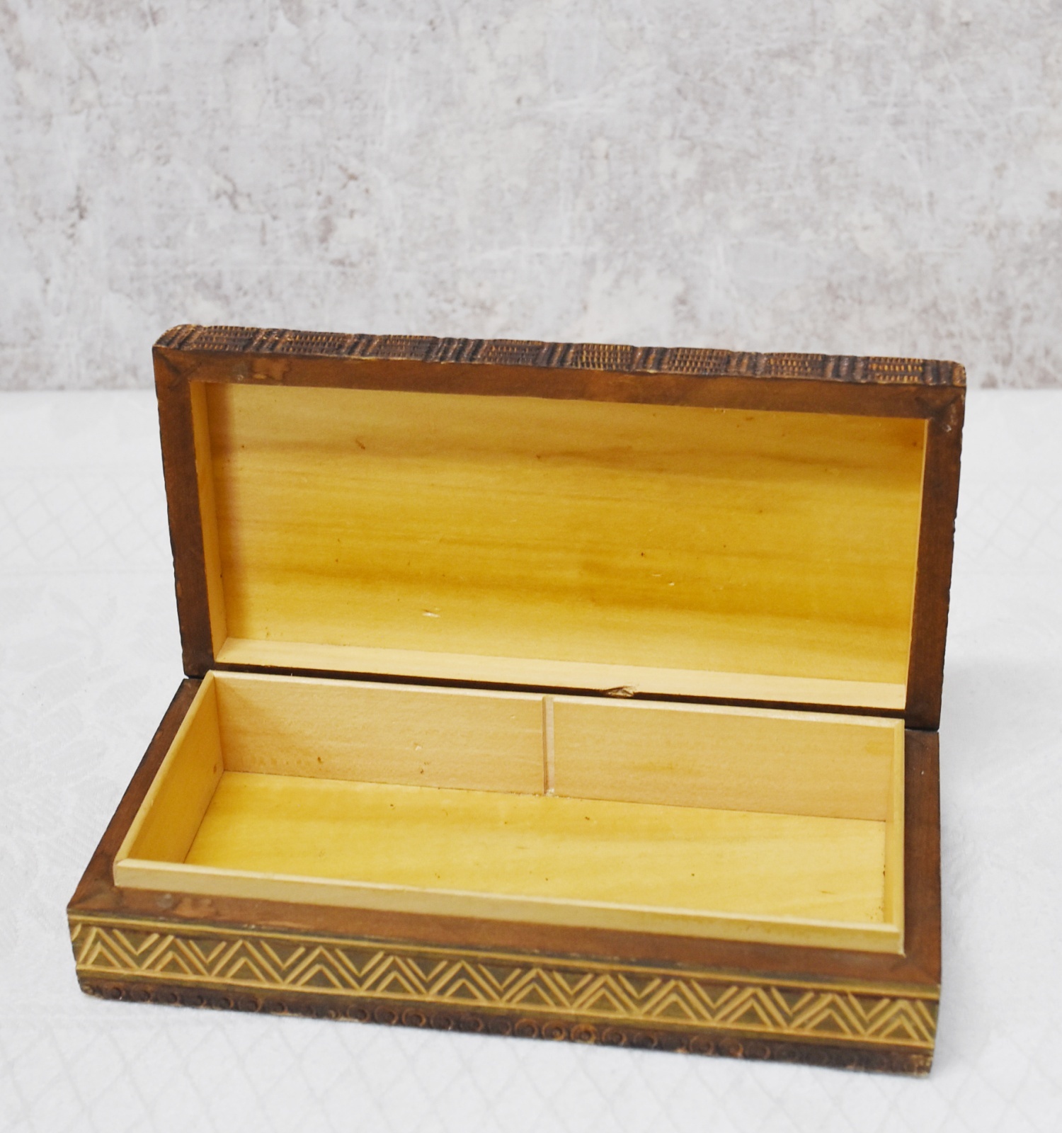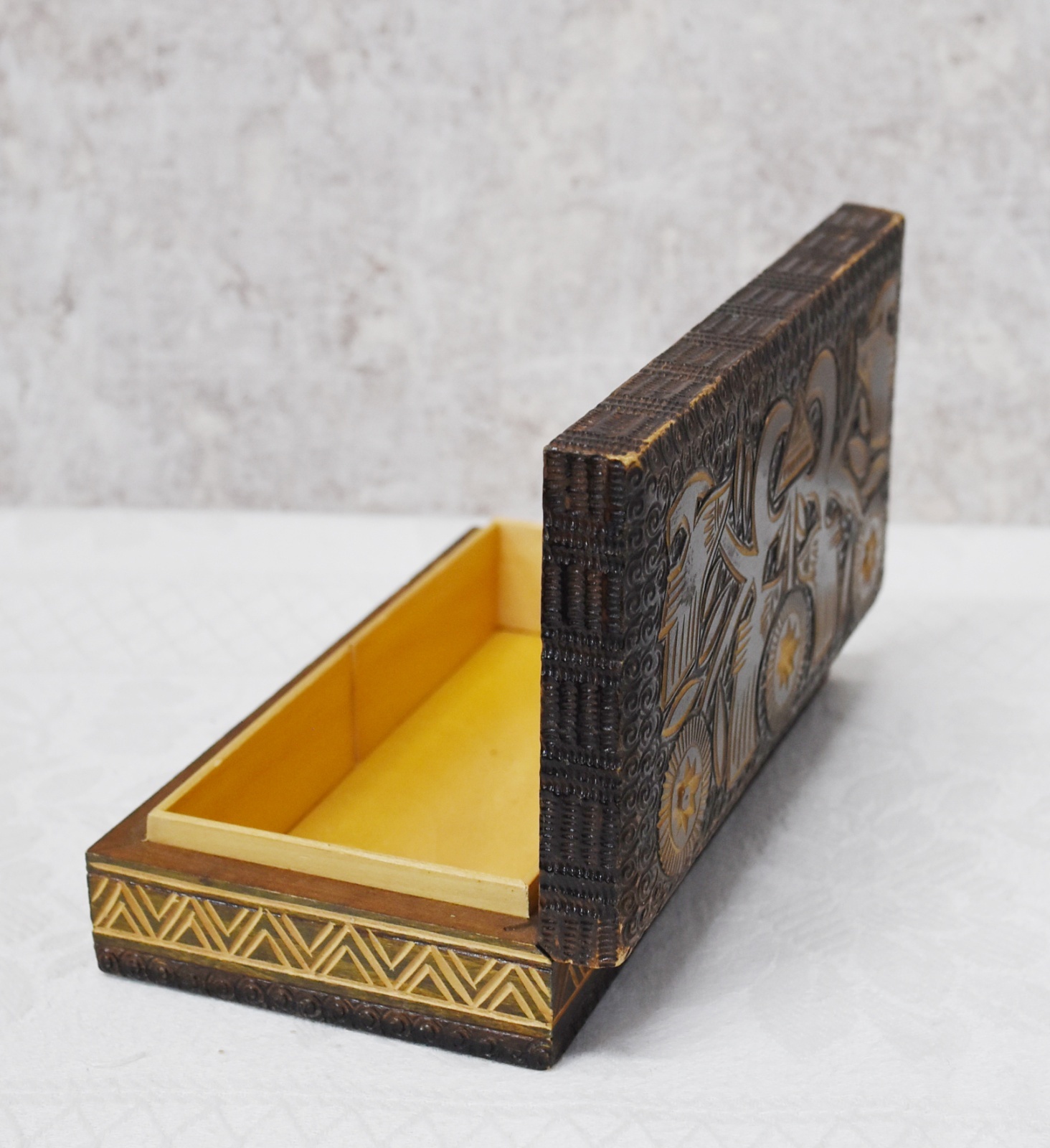 【ビンテージ】【ネイティブ柄】木彫り【ケース】ペンケース 木箱