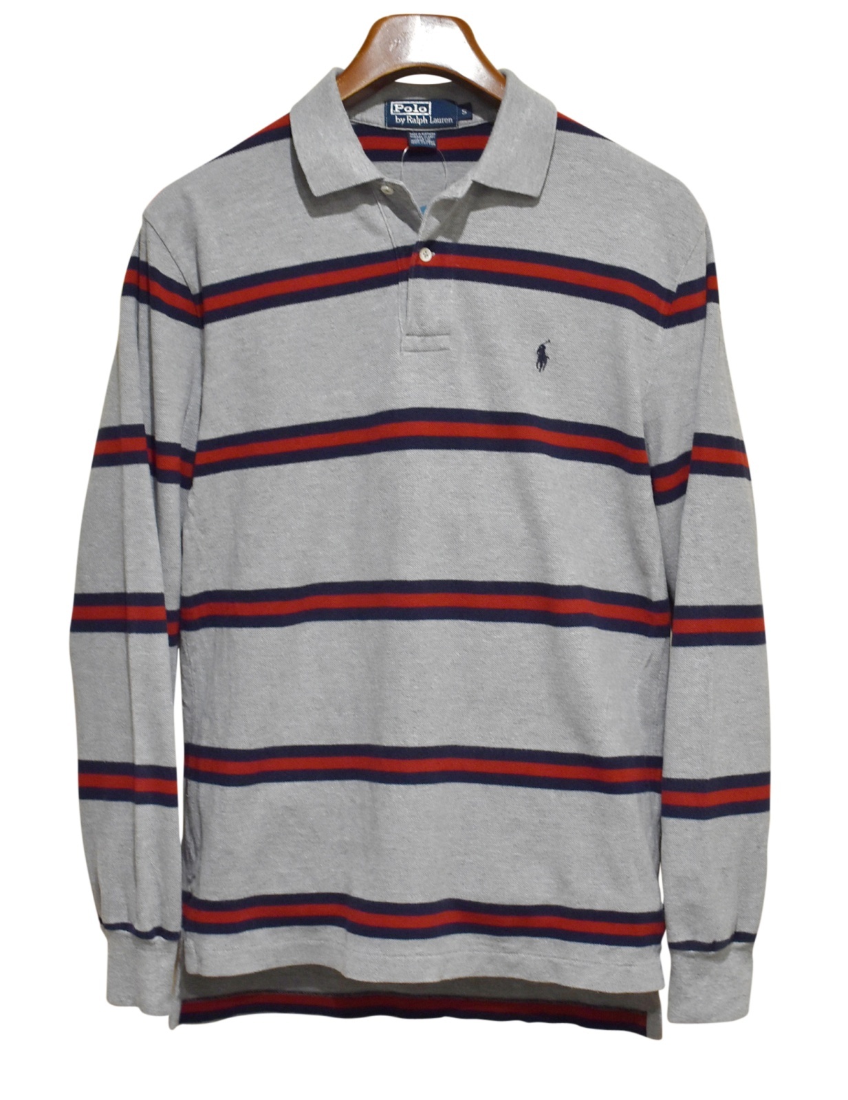 ビンテージ【ラルフローレン】 【POLO ralph lauren】【グレーx赤x紺】【ボーダー】長袖【ロングスリーブシャツ】【ポロシャツ】 【サイズS】