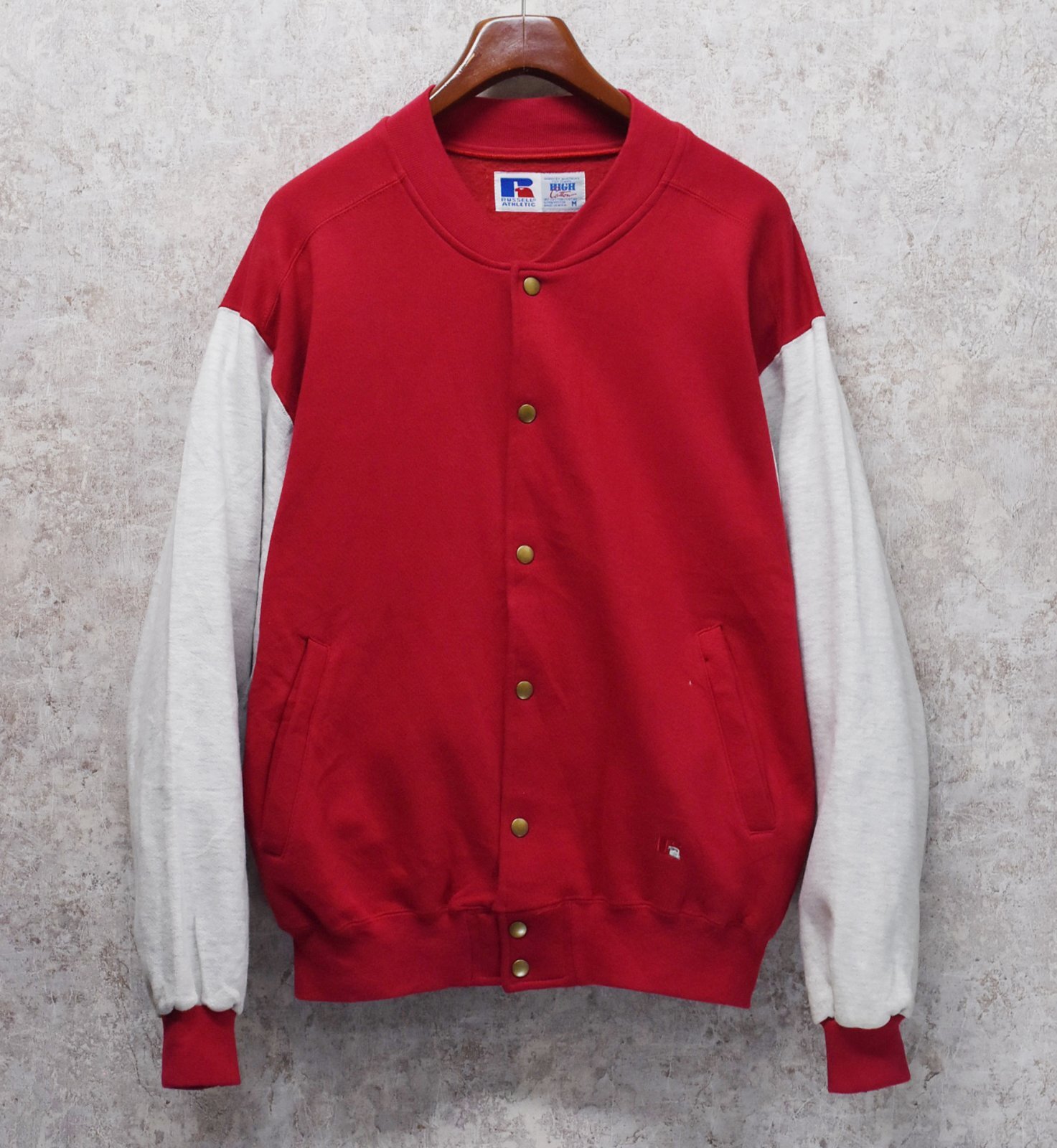 90's USA製【ビンテージ】RUSSEL【ラッセル】【赤xグレー】【スウェットスタジャン】【サイズM】