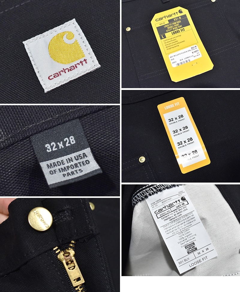 デッドストック 【USA製】【未使用】【カーハート】【carhartt】黒【コットン】ダブルニー ワークパンツ【ペインターパンツ】【32x28】