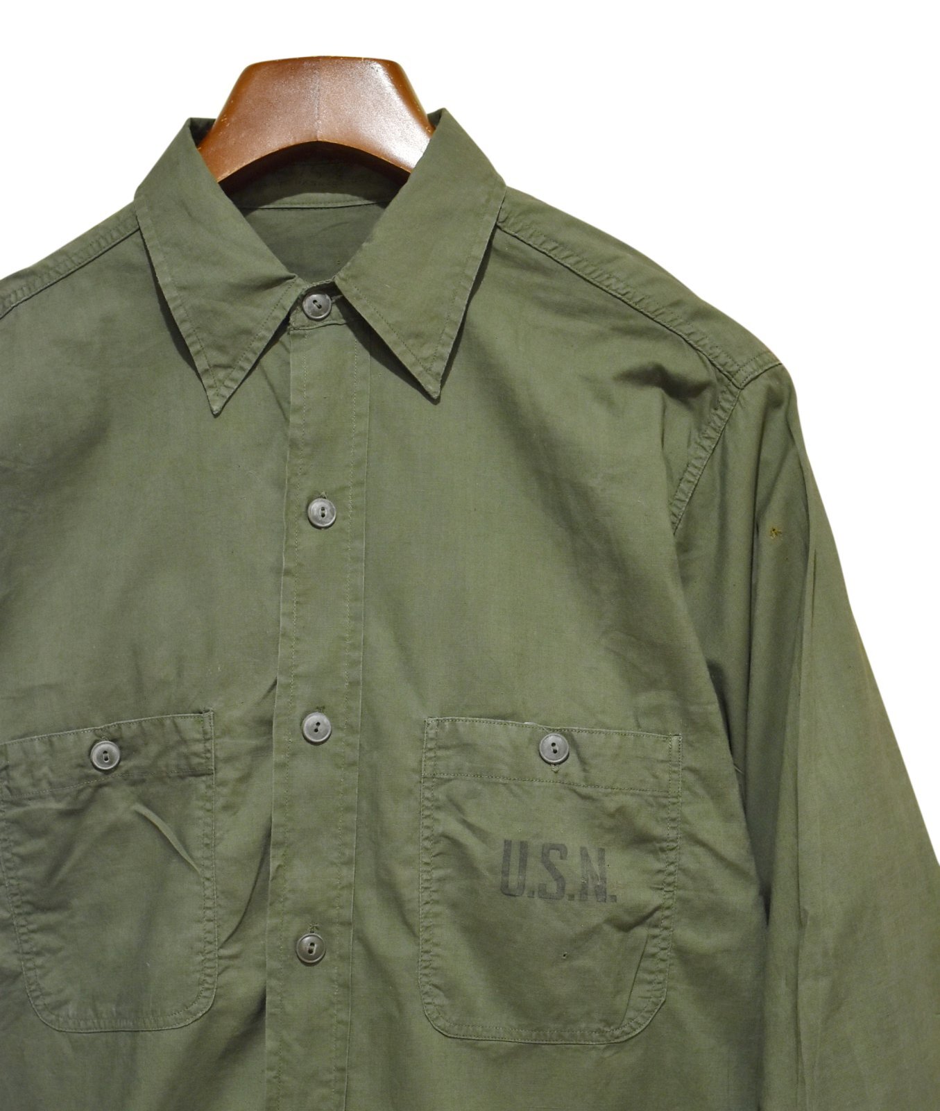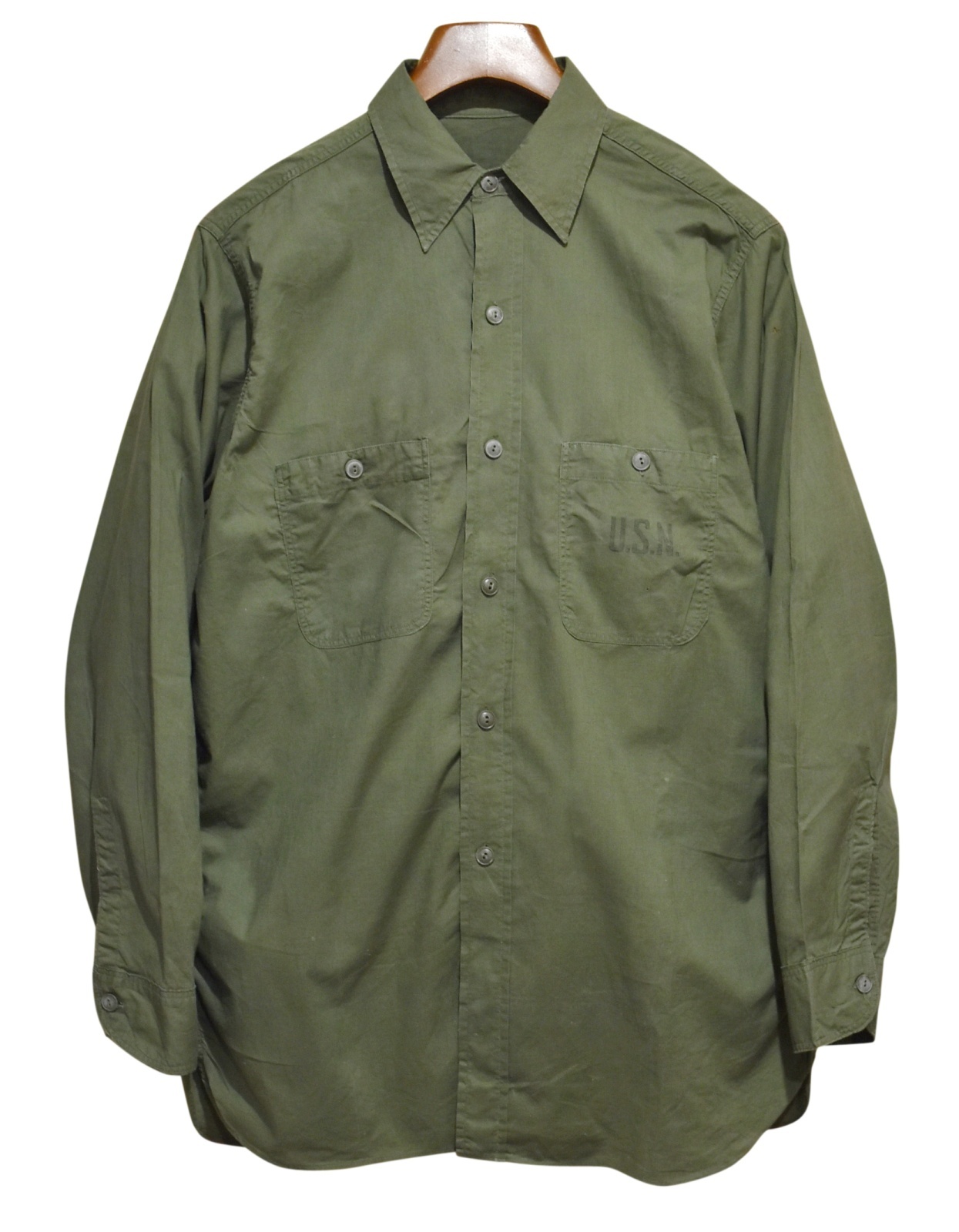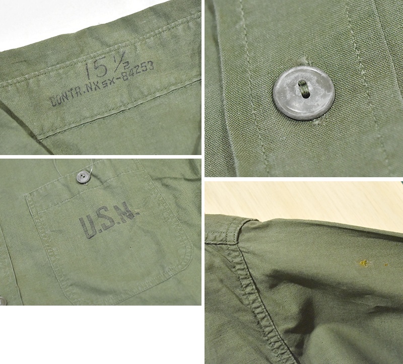 40's【米軍実物】USネイビー【ビンテージ】【U.S.NAVY】【N-3】 【コットンポプリン】ユーティリティシャツ【15 1/2】